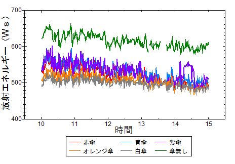 まず傘の有無による効果を考えると、傘をさすことで傘の下の温度が上昇する傾向が見られた。
