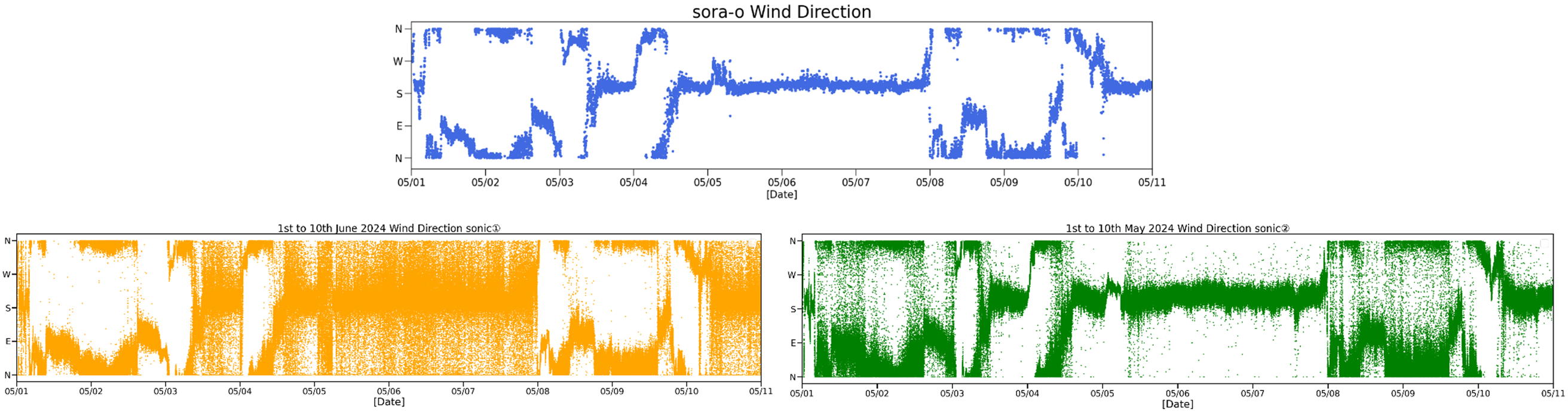▲2024年5月1日~5月10日 SORA-o風向(青), Esonic風向(橙), Wsonic(緑)