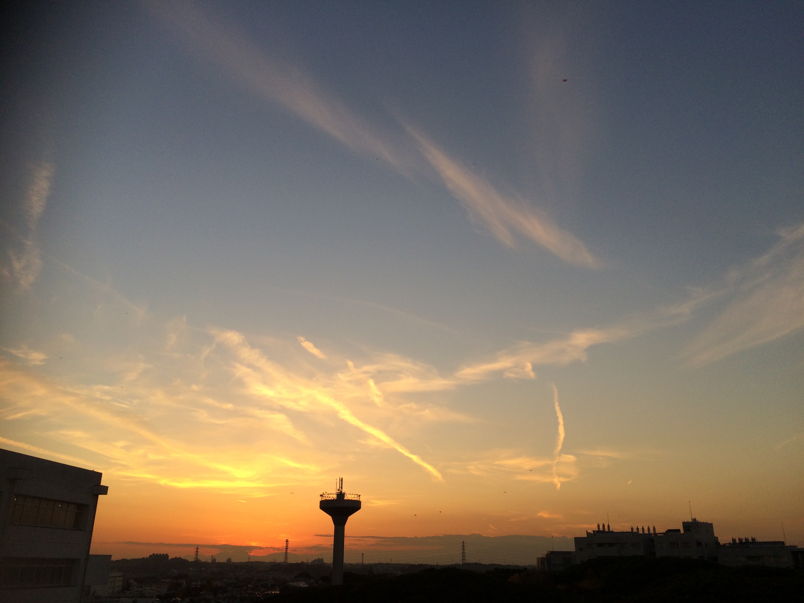 2014年11月27日16:27 @2研屋上 赤く染まる空の巻雲 |