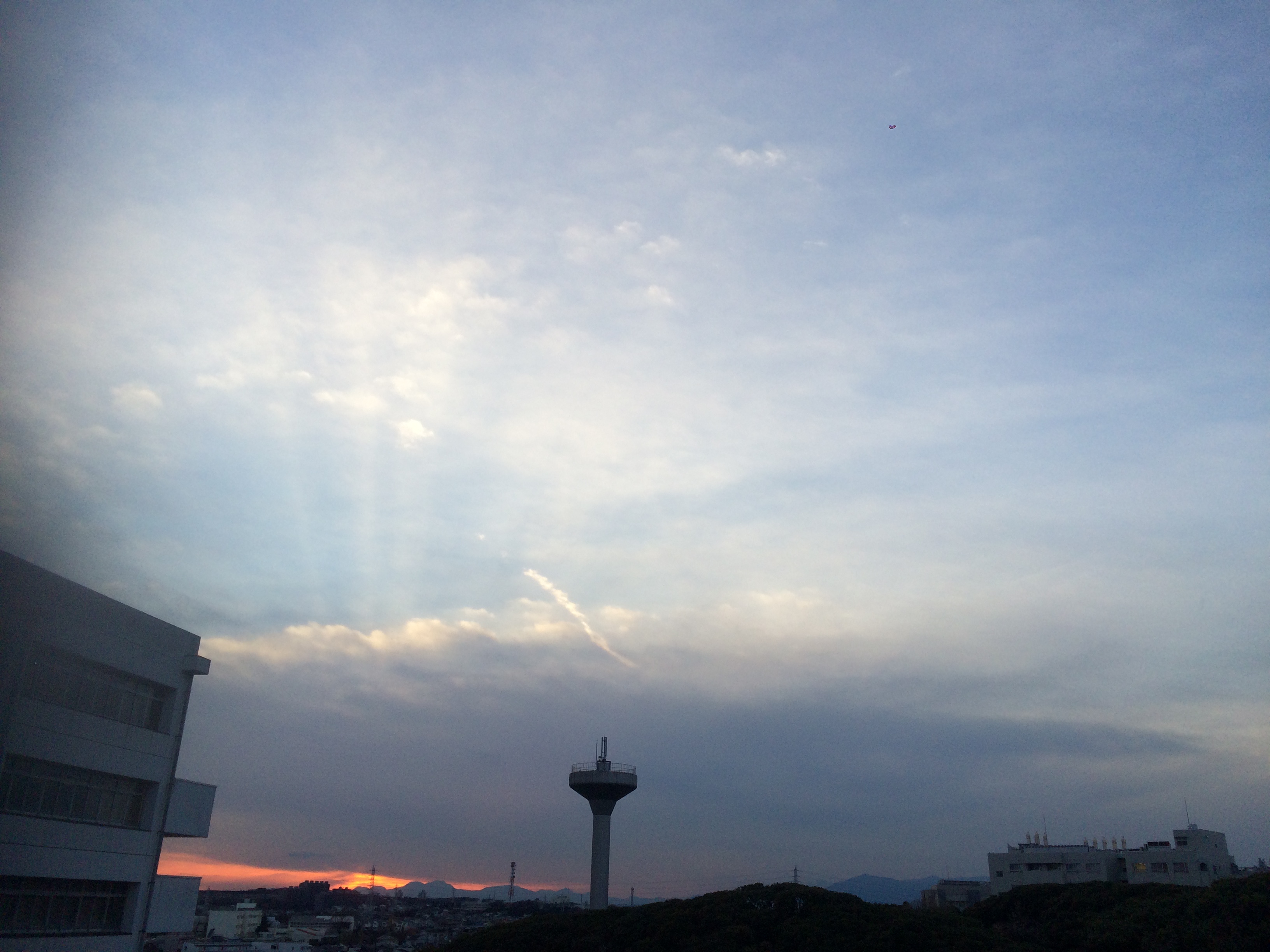 2014年12月15日16:16 @2研屋上 日が雲の上からさしています |