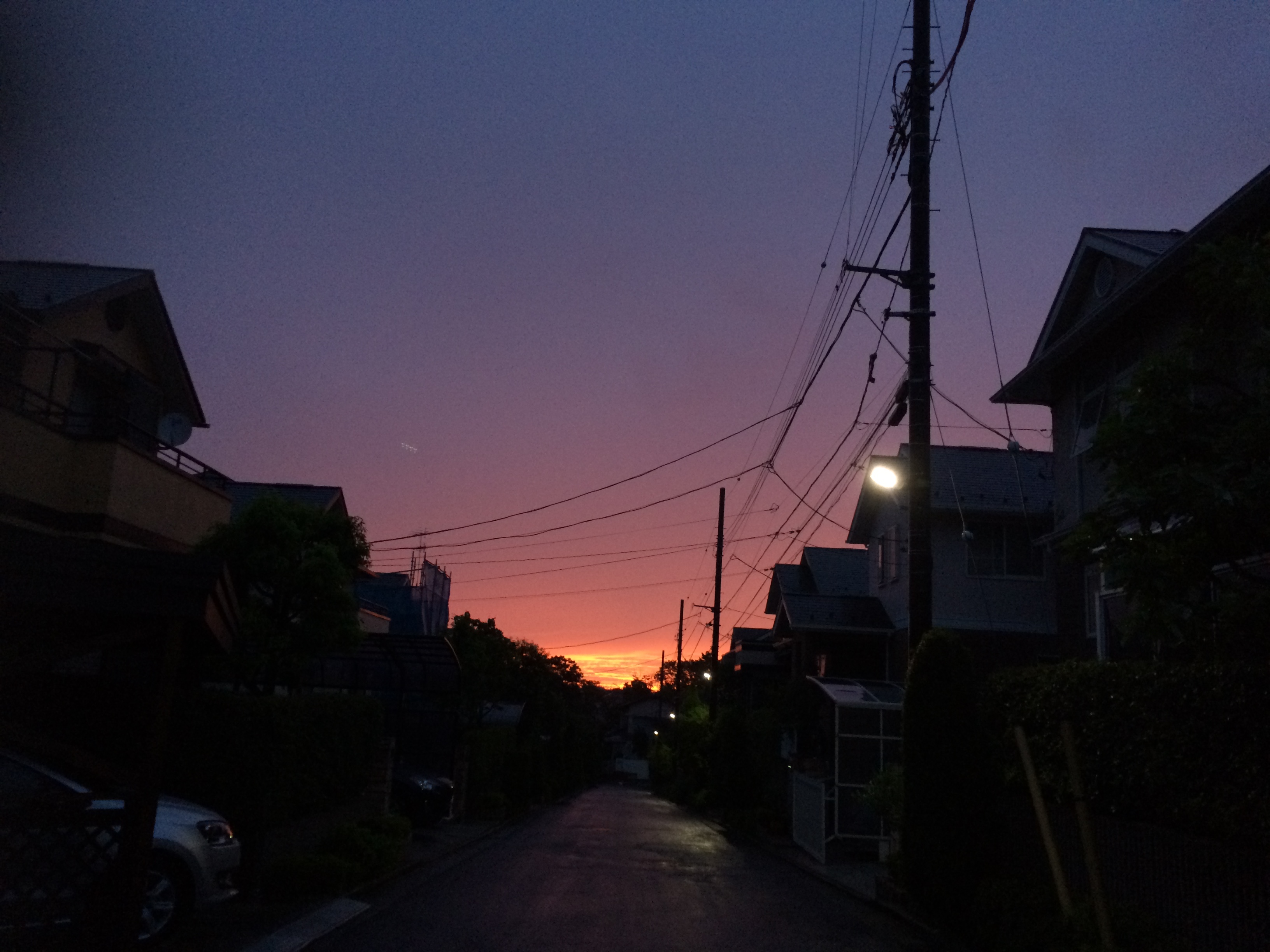 2015年7月23日4:33 @横浜市 港南区 港南台 住宅街に見る朝焼けも捨てたものじゃない |