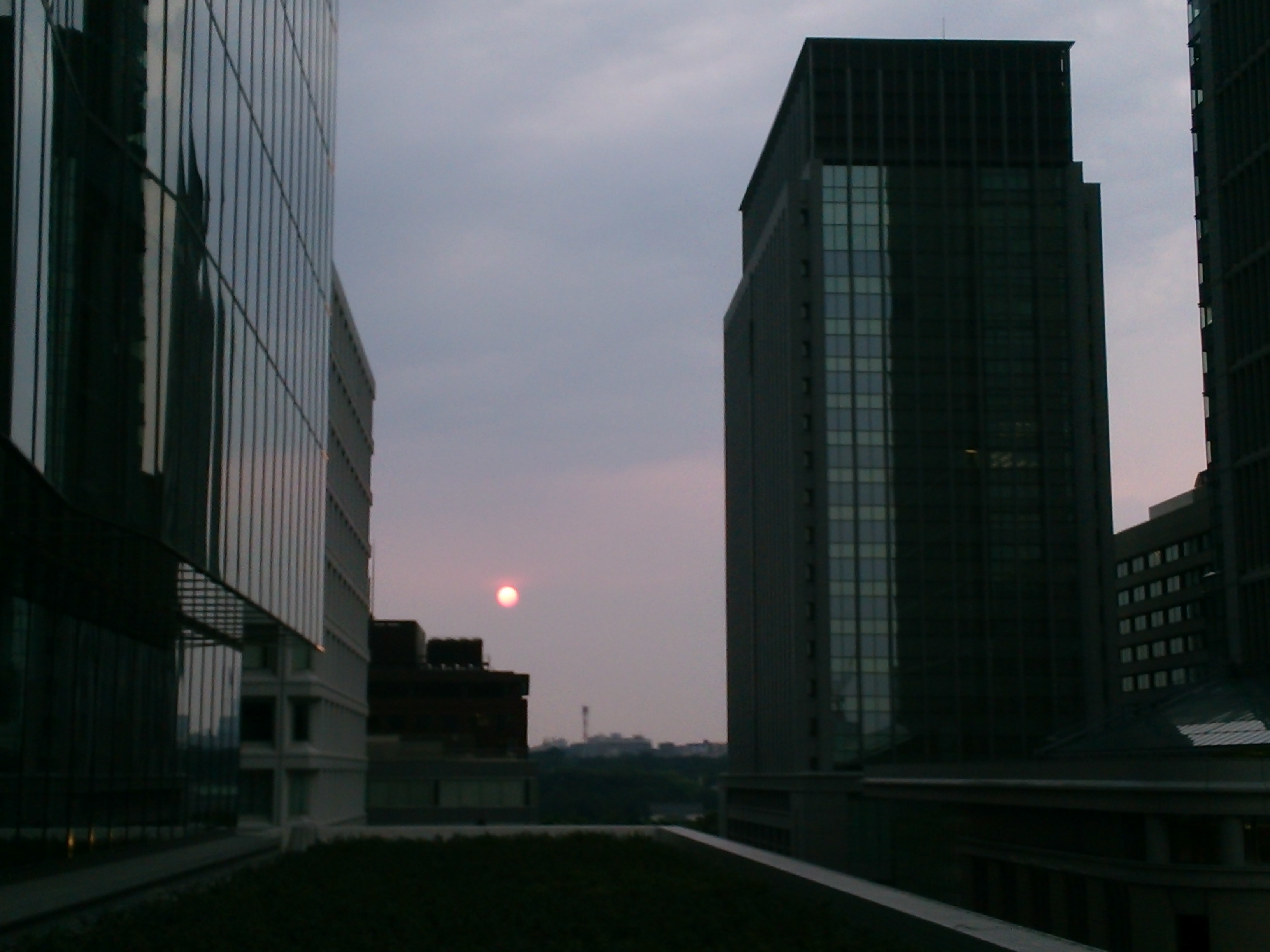 2013年8月11日18:03 東京駅付近 きれいな太陽 |