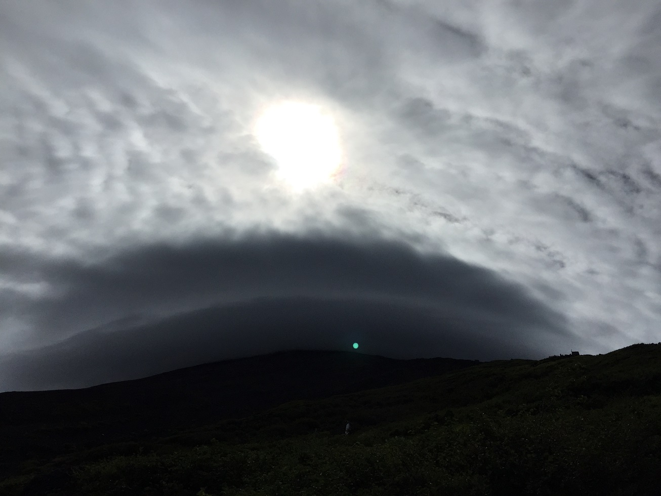 2016年8月16日12:57 @富士山6合目付近 山頂を中心に回る気流によって形作られているそうです♪ |