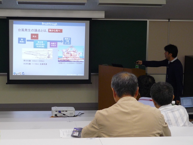 午後一番手は、 我らが筆保先生です!! 「台風研究最前線!! 〜台風発生の謎に迫る〜」 |