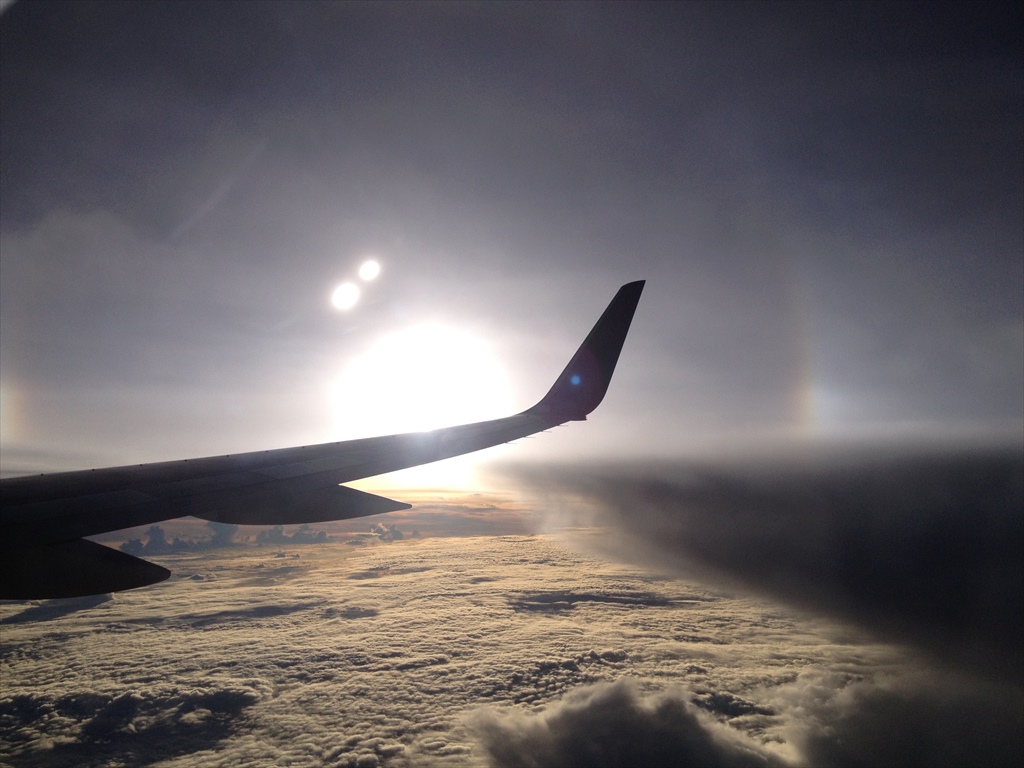 飛行機から積乱雲やかなとこ雲、ハロ?といった空の変化を楽しんで見ていたら、寝られなくなりました...