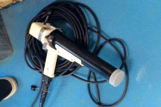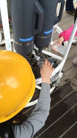 船上から海に向かって水温センサーを放出し、水温を測定します。