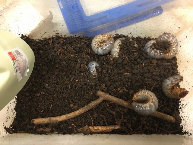 順調に成長していくわが家族の、カブトムシたち。