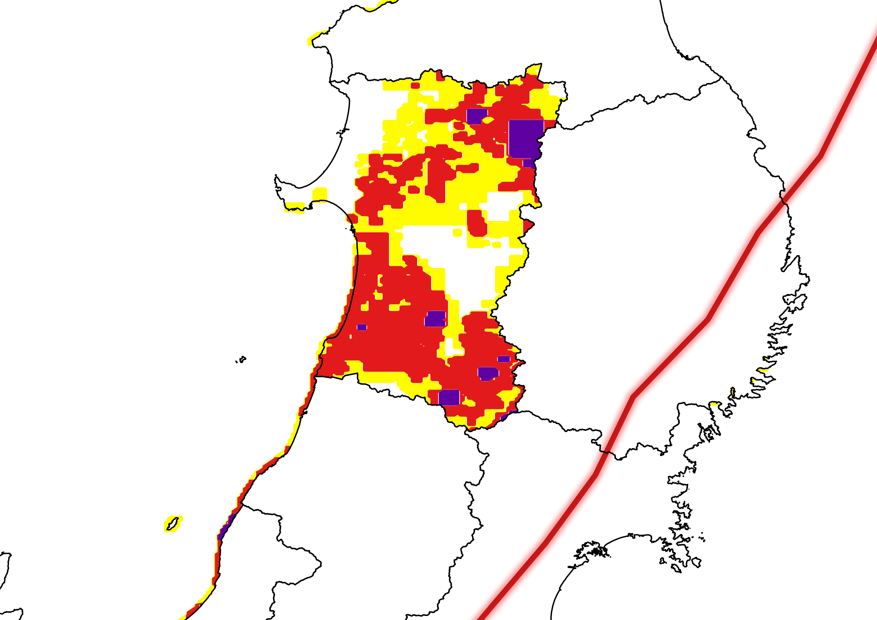 | 図2.Hagibisモデルでの秋田県にとっての最悪経路 |