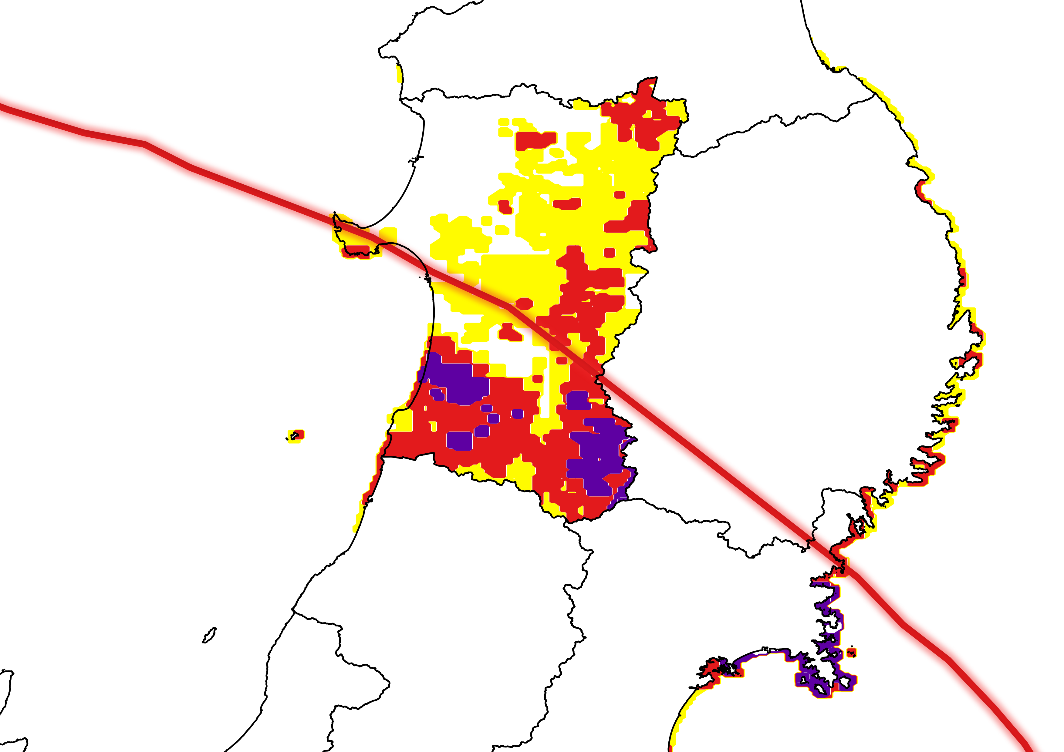 | 図4.2018年24号モデルでの秋田県にとっての最悪経路 |