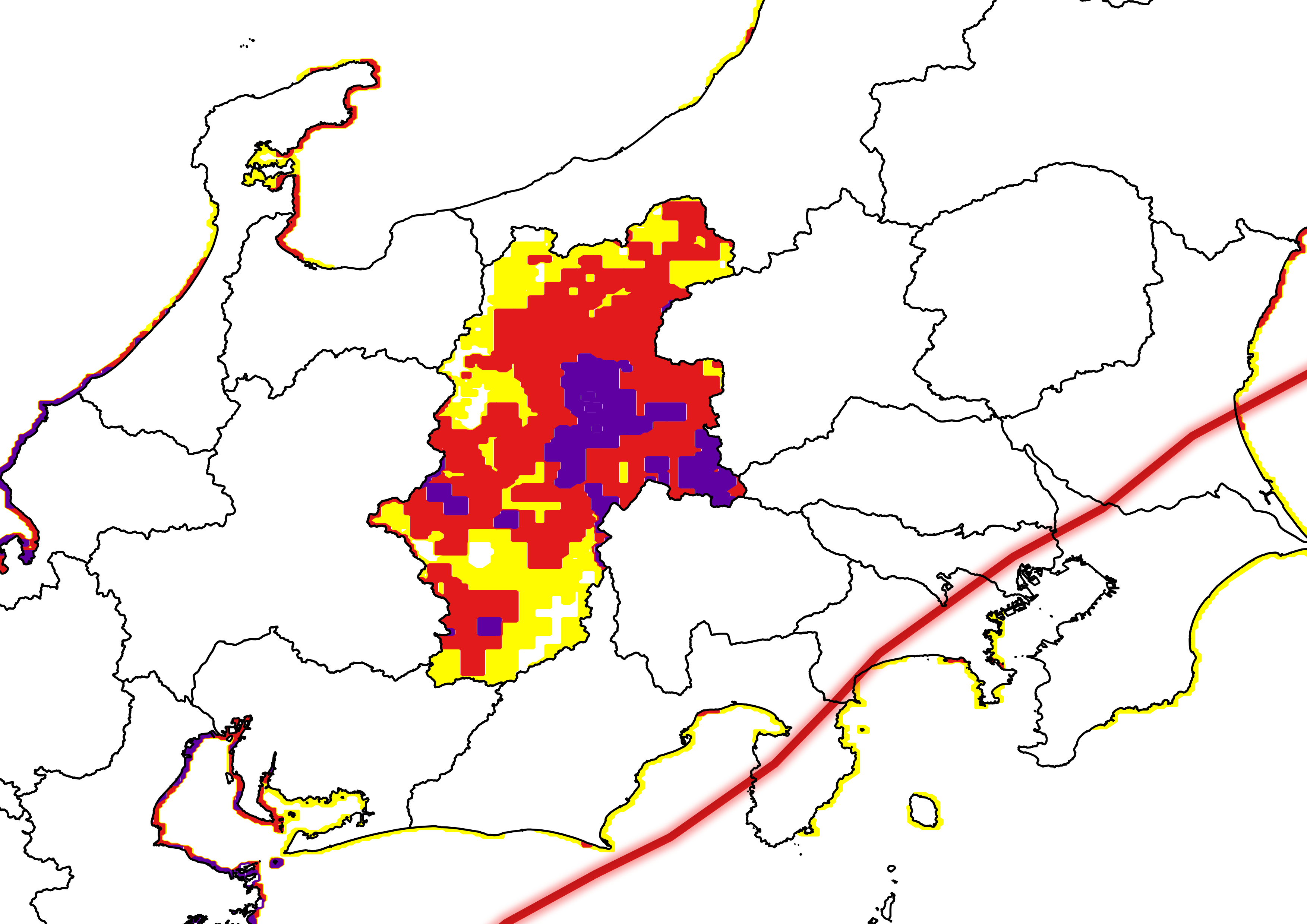 | 図4.2018年24号モデルでの長野県にとっての最悪経路 |